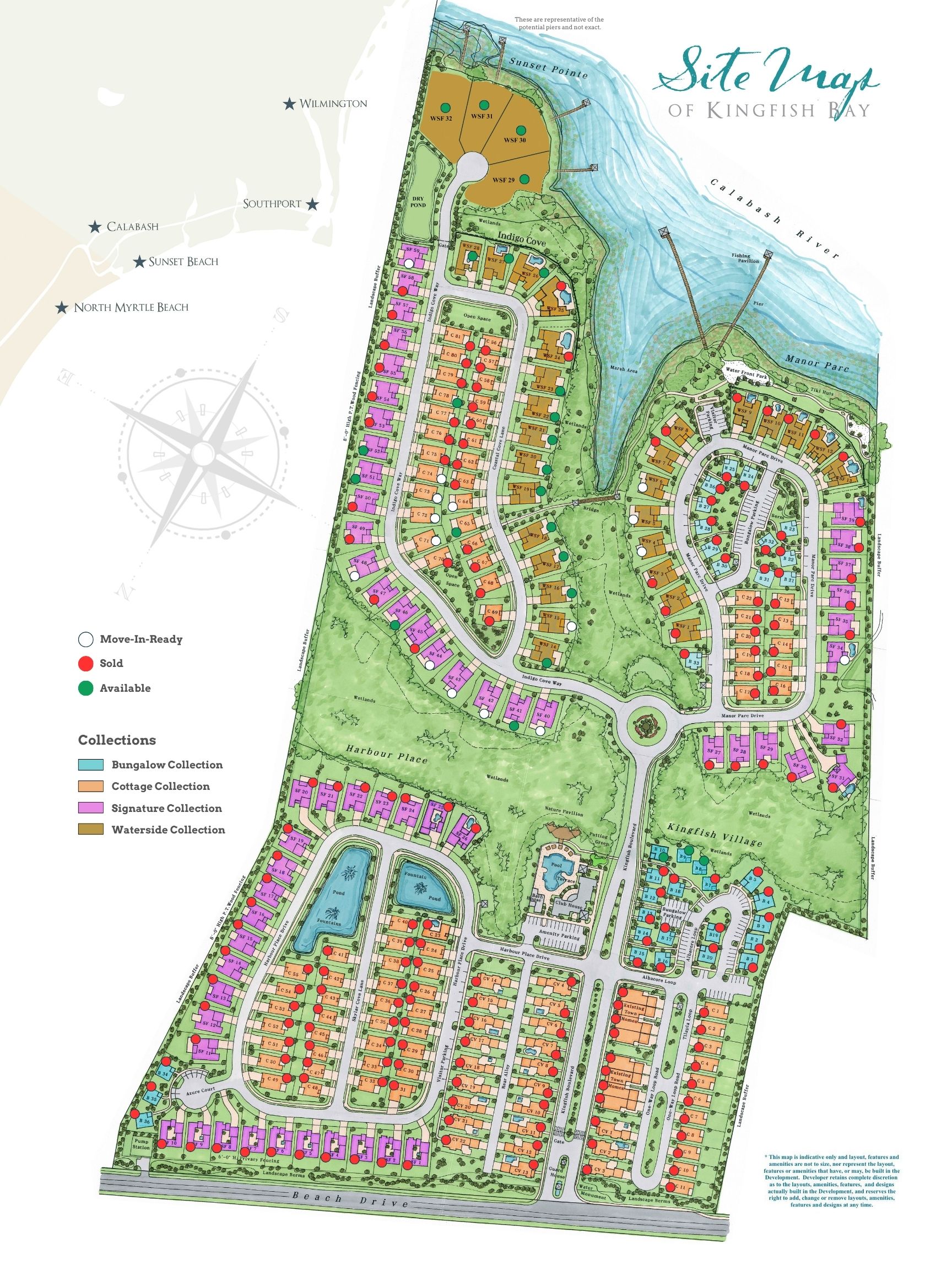 Use our sitemap to explore Kingfish Bay at a glance. Easily see where each of our home collections are located, current home availability, key amenities, and how the community is thoughtfully laid out.