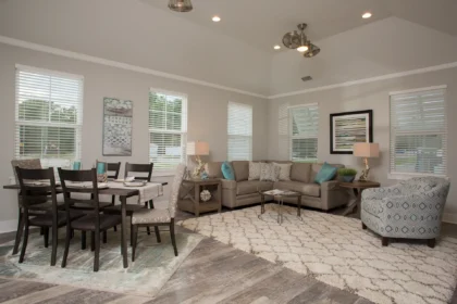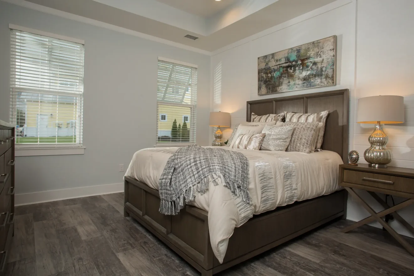 The Sunfish offers a bright and efficient single-level layout designed for relaxed coastal living. The great room, dining area, and kitchen come together in one open space, creating a comfortable central hub with plenty of room to unwind or entertain. The owner’s suite sits quietly toward the back of the home with a spacious walk-in closet and a well-appointed bath. A second bedroom and full bath are positioned near the front, making it easy to welcome guests while maintaining privacy.